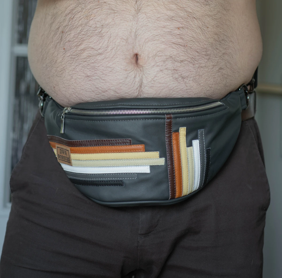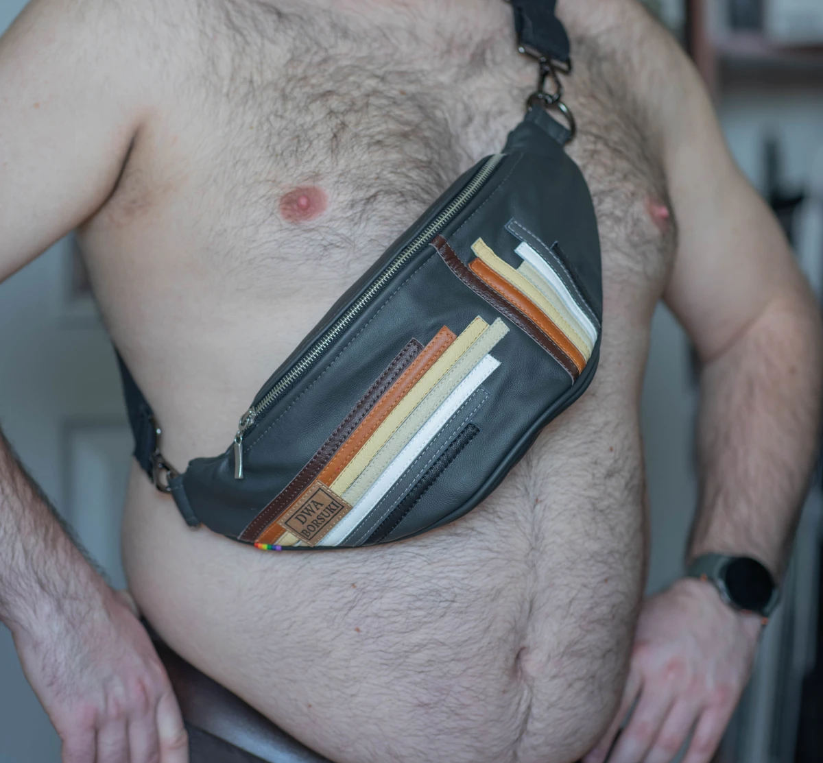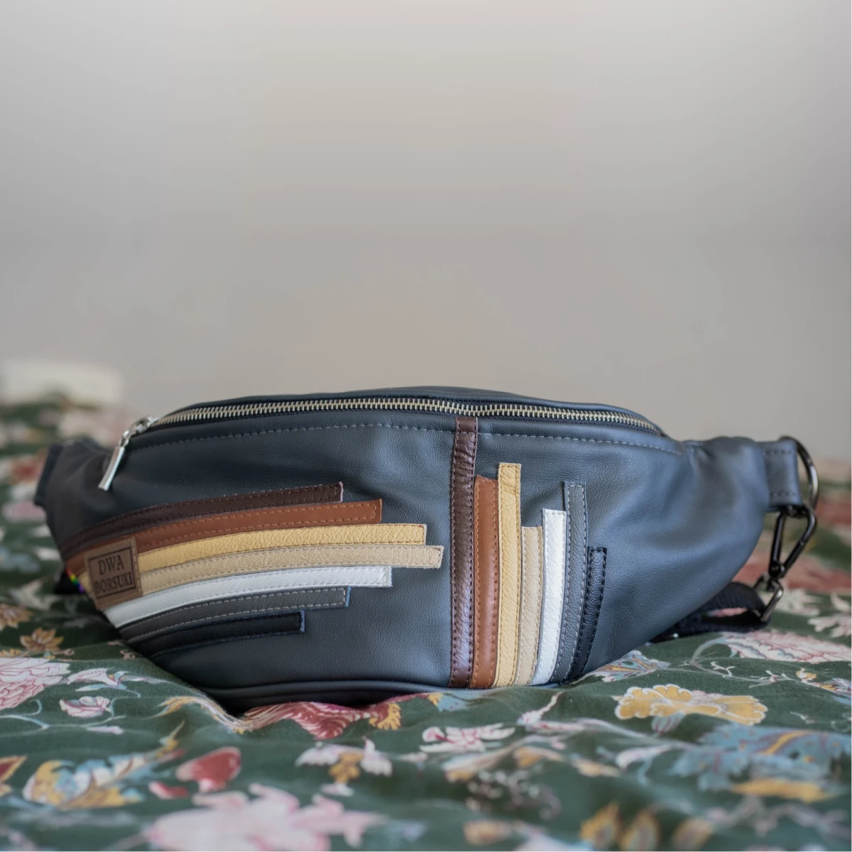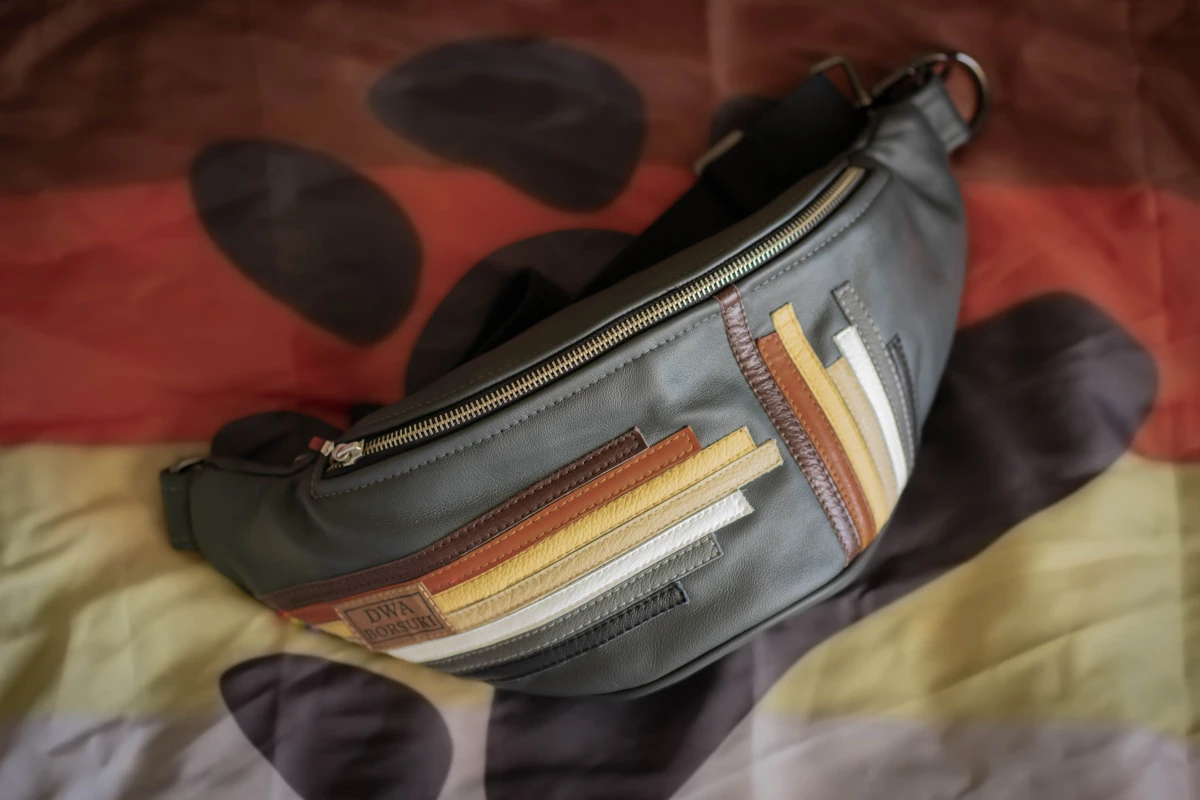 Głównym materiałem użytym przy produkcji jest skóra pozyskana z pracowni tapicerskich dla zachowania idei zero waste.